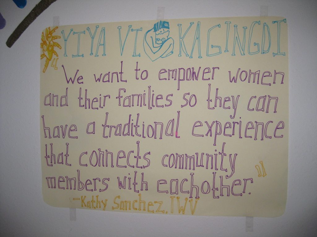 The seven month program nurtures relational-tivity and builds awareness while conveying core knowledge. While some other programs condense and deliver basic information in four days, the Yiya Vi Kagingdi project leads and supports trainees through a trauma-informed journey of reflection, connecting to cultural strengths, honoring ceremony and the sacredness of birth, and centering healing.